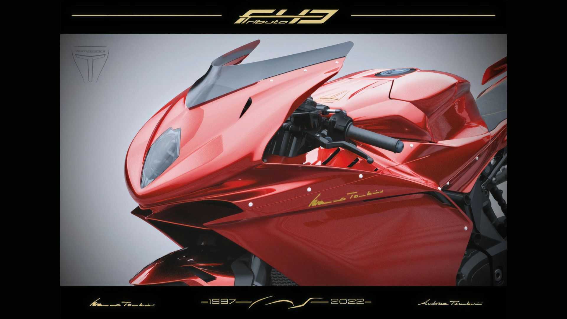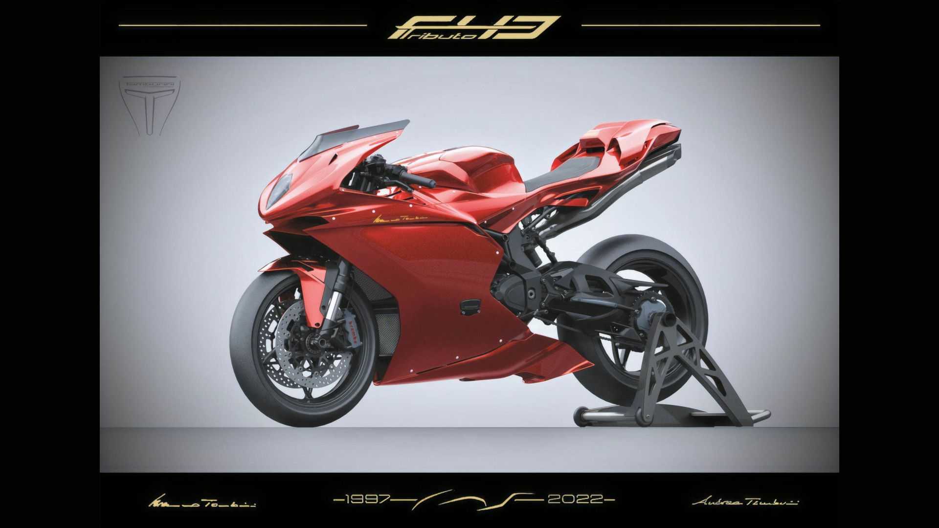 La silhouette adhère au design d’origine mais a été entièrement remodelée en tenant compte des nouvelles tendances, et avec l’ajout de quelques détails comme le déflecteur devant la roue arrière. Naturellement, les carénages sont en fibre de carbone. Seuls 25 exemplaires seront construits, toute la peinture sera peinte à la main et il sera possible de choisir parmi cinq couleurs qui rappellent des versions très réussies : F43 Tamburini, F43 Veltro, F43 Serie Oro, F43 Mamba et F43 Viper.