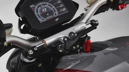 L’électronique a également fait l’objet d’une mise à jour majeure, avec l’arrivée de l’unité de mesure inertielle (IMU) de la société milanaise e-Novia. La Brutale 800 RR est désormais livrée de série avec un contrôle de traction adaptable en courbe, un ABS évolutif en courbe également, un launch control et un anti-wheeling.
