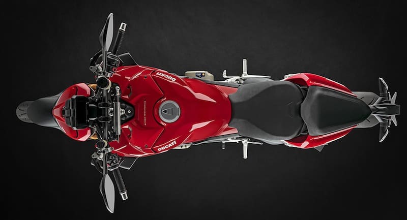 La Streetfighter 2020 est dans la filiation du modèle faisant d’elle une Panigale V4 à poil… ou presque puisque l’ergonomie a été revue pour l’occasion. LEDs en forme de V, l’italienne est prête à bondir et clairement elle en a les moyens ! Propulsée par un V4 (l’alimentation des cylindres arrière se stoppe au ralenti lorsque la température de l’eau est au dessus de 75° évitant ainsi les surchauffes moteur en ville) de 1 103 cm3 de 208 chevaux à 12 750 pour un couple de 123 Nm à 11 500 tr/min (vous pourrez passer à 220 chevaux avec un package Akrapovic optionnel si vous trouvez qu’il n’y en a pas encore assez, tout en grappillant 6 kilos), la Streetfighter V4 a droit à toute l’électronique de rigueur : ride-by-wire, ABS en courbe (Bosch 9.1MP), DSC, DCT EVO2, contrôle de wheeling et frein moteur (EBC EVO), shifter up / down, trois modes de pilotage (Race, Sport, Street), assistance au démarrage… tout ça paramétrable via l’écran couleur TFT de 5’’.