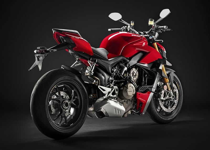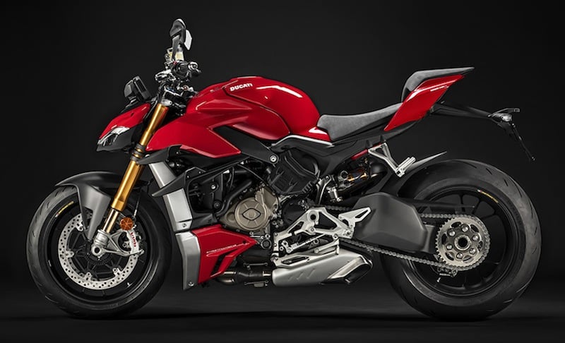 Elle est enfin là cette Streetfighter V4 ! Ducati a dévoilé son dernier gros roadster décliné en version standard et finition S, encore plus sportive, avec à la clef des suspensions Öhlins (fourche inversée NIX-30, amortisseur TTX36, amortisseur de direction piloté Öhlins Smart EC 2.0) et jantes 3 bâtons en aluminium forgé made in Marchesini.