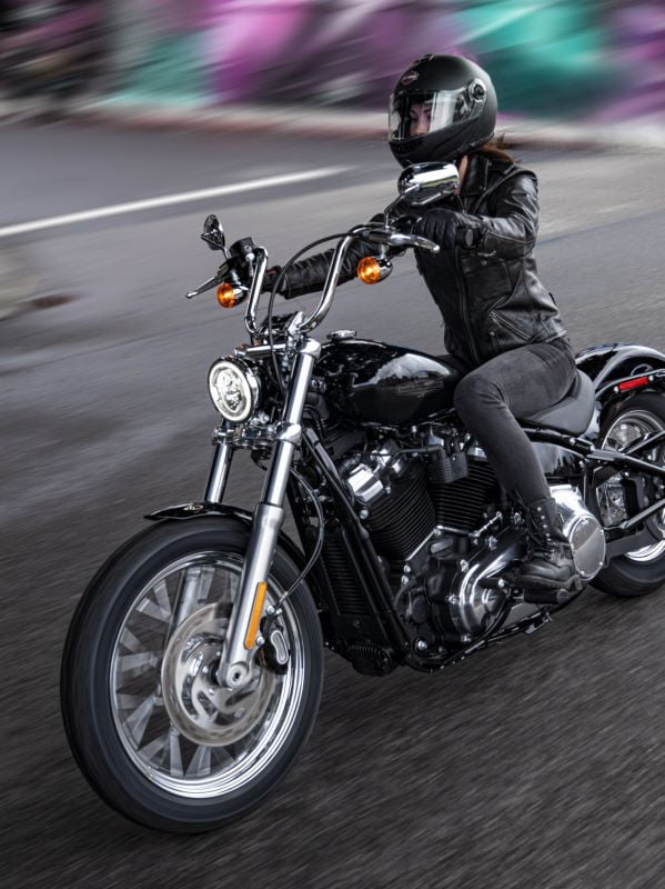 On retrouve donc un bobber équipé d’une selle solo, d’un guidon « Mini ape», un réservoir de 13,2 litres, une roue avant de 19 pouces (16 pouces pour l’arrière) et un V-Twin type Milwaukee-Eight 107 avec filtre à air rond et échappement Shotgun décalé 2 en 2… bref une bonne base pour personnaliser ce Softail à votre image.