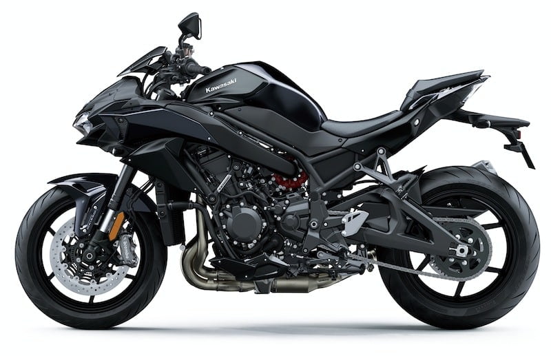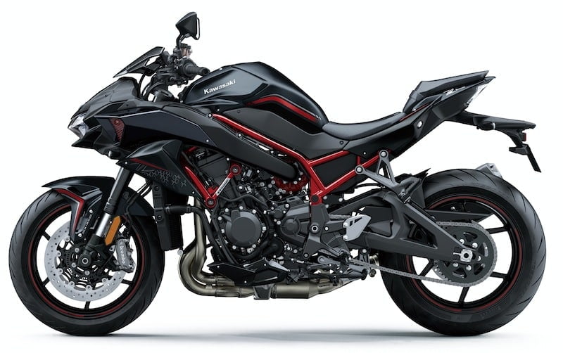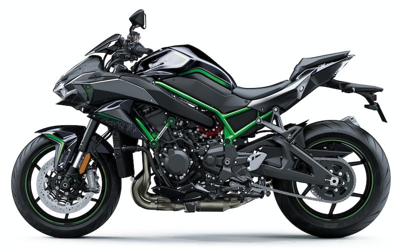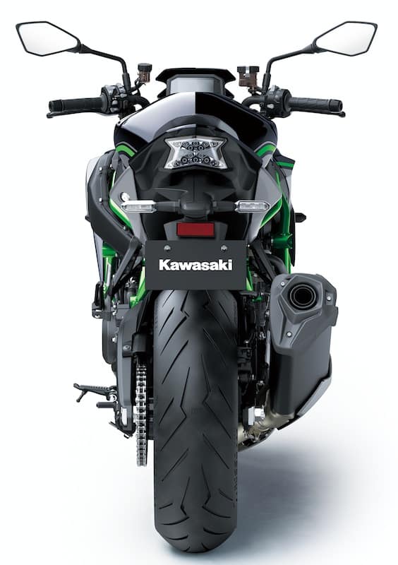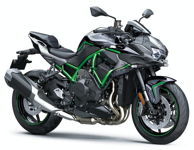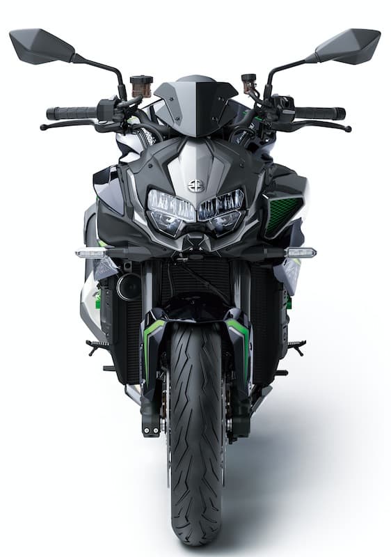 Voici la Z la plus radicale, la plus avancée technologiquement et la plus puissante jamais sortie des usines Kawasaki. La Z H2 est la suite logique des Ninja H2 et Ninja H2R, un roadster équipé d’un quatre cylindres de 998 cm3 pourvu d’un compresseur faisant écho à l’esprit « Sugomi » cher à la marque verte. Un style reconnaissable notamment grâce à son empreinte lumineuse entièrement équipée de LEDs (clignotants et éclairage de plaque inclus), son châssis tubulaire, sa prise d’air asymétrique sur le côté du phare ou l’emblème en relief « Supercharged ».