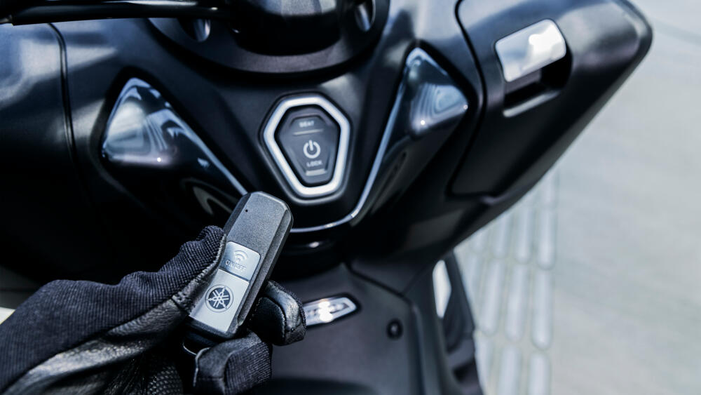 Le contacteur électronique permet au pilote d’accéder à son scooter tant qu’il est en possession de la clé intelligente. Et pour 2022, le TMAX va encore plus loin avec ses nouveaux commutateurs qui simplifient l’ensemble du processus. Un nouveau commutateur central réunit un grand nombre de fonctions de sorte que le pilote puisse à présent mettre/couper le contact, activer le commutateur principal et le verrou de direction du guidon, ainsi qu’ouvrir la selle avec moins d’étapes opérationnelles.