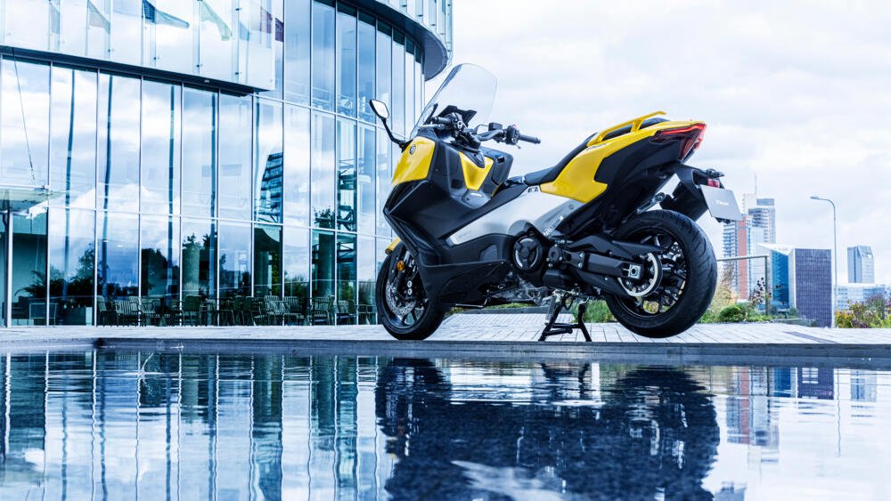 Afin de rendre hommage au premier modèle, le nouveau TMAX sera disponible en coloris Extreme Yellow. Cette couleur audacieuse sera toujours associée à la première version et elle symbolise à la perfection l’esprit dynamique et joueur du scooter numéro un en Europe. Également disponible en Icon Blue et Sword Grey.
