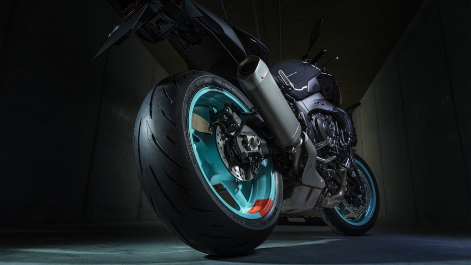 La MT-10 est équipée de jantes légères de 17 pouces à cinq bâtons en aluminium, chaussées de Bridgestone Battlax Hypersport S22. Le pneu 120/70-ZR17 à l’avant et le 190/55-ZR17 à l’arrière offrent une adhérence exceptionnelle. Ces éléments, ainsi que les aides électroniques au pilotage, engendrent une maniabilité et un niveau de contrôle excellents dans de nombreuses conditions de conduite.