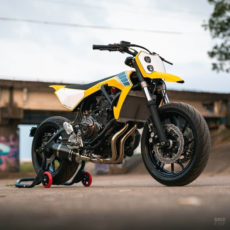 Cure d’amaigrissement pour cette Yamaha MT-07 de 2017 qui change de segment pour s’orienter vers le Supermotard.