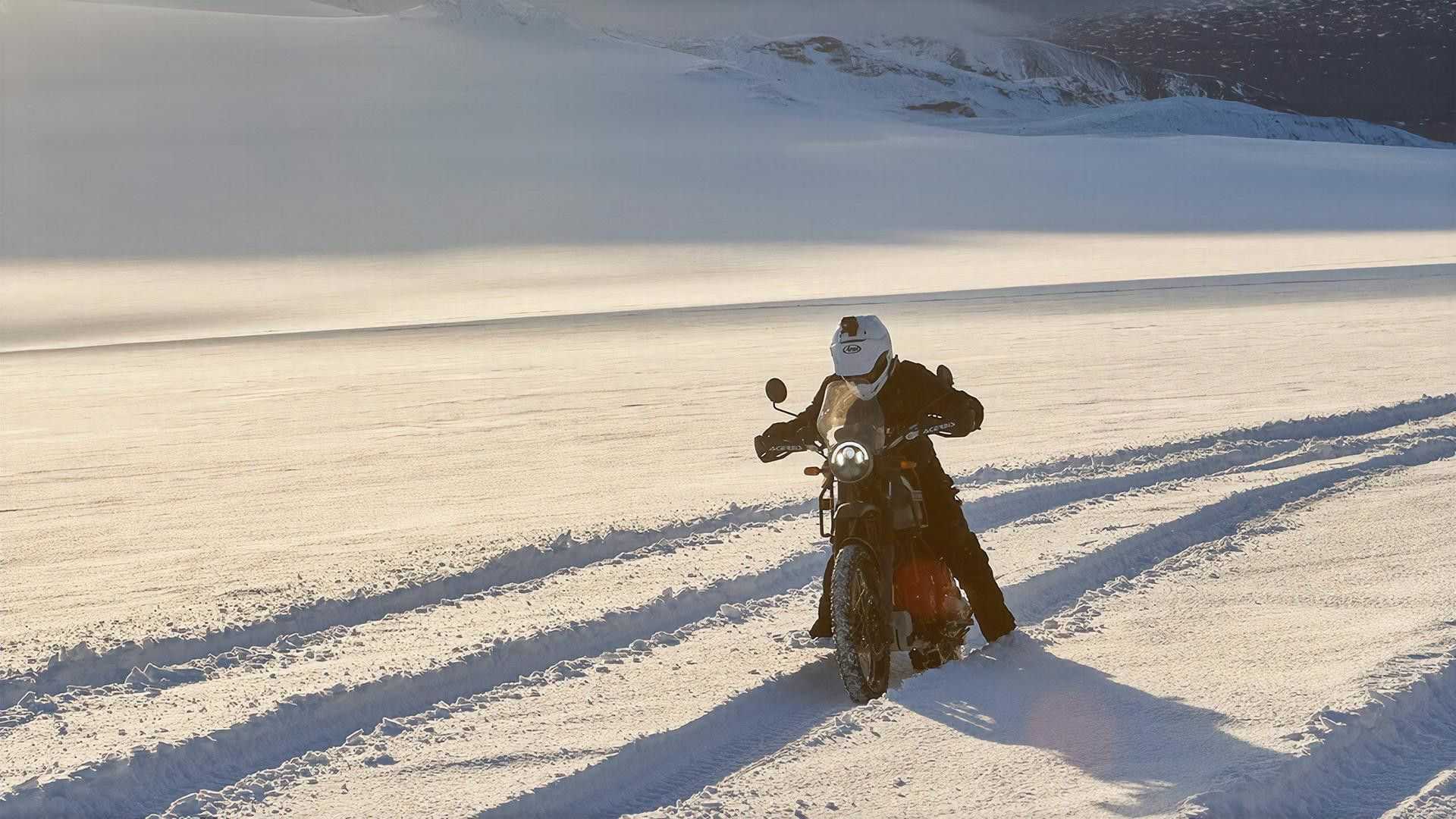 Cette aventure de 770 km et 39 jours unique en son genre (aucune moto n’est encore allée jusque-là), est un hommage à l’histoire de cette marque née en Angleterre au tout début du XXe siècle et désormais implantée en Inde, dont le nom évoque immanquablement l’aventure et les grands espaces. De fait, la marque n’a jamais cessé de produire des motos à la fois simples et robustes tout au long de ses 120 ans d’existence. De nombreux aventuriers ont bien compris que ces mécaniques fiables pouvaient les accompagner au bout de leurs rêves les plus fous, à travers les déserts, le froid ou sur le mont Everest. L’Himalayan, une moto lancée en 2016 par les constructeurs allie les qualités qui ont fait la réputation de la marque, toujours utilisés pour les traversées de l’Himalaya justement. Les deux pilotes qui vont se lancer dans cette aventure prendront le guidon de deux motos spécialement préparées pour cette expédition, ce qui leur permettra d’affronter le froid, la neige et la glace, comme le confirment les essais réalisés en Islande depuis le mois de septembre 2020.