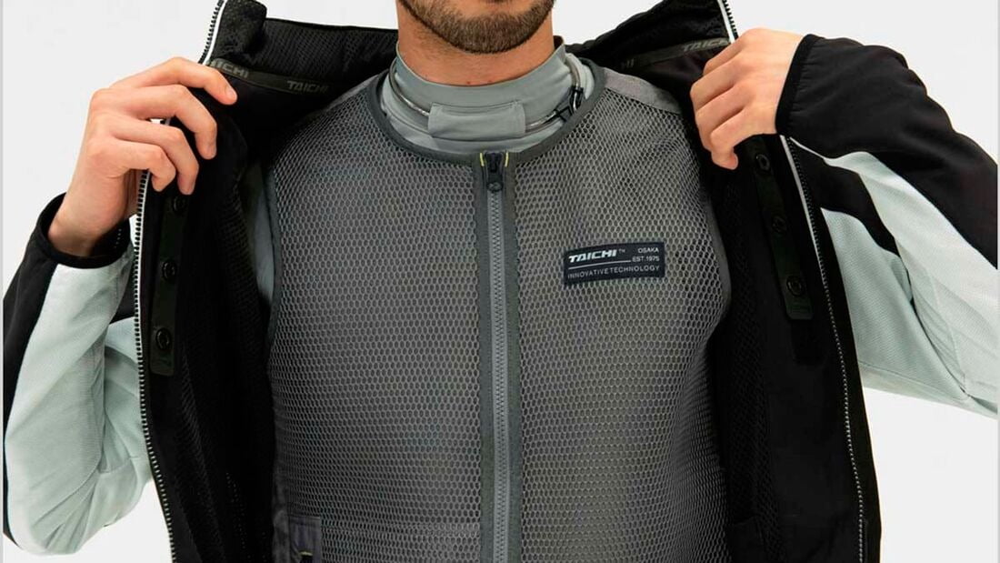 RS Taichi s’est associé à la société Japonaise de cosmétiques pour hommes Mandom Corporation pour créer LiquidWind. Le principe du LiquidWind repose sur le trempage stratégique d’un vêtement à l’intérieur du blouson. Mais ici, ce liquide de refroidissement est distribué au compte-gouttes. Il est sans parfum, mais contient un déodorant et du menthol pour amplifier la sensation de fraîcheur et garder une odeur agréable toute la journée.