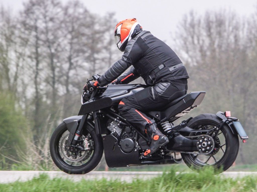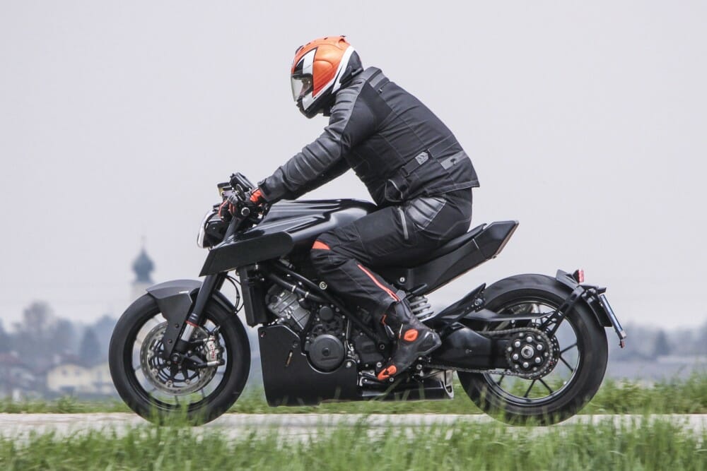 Il est vrai qu’il continue de présenter le même phare circulaire et futuriste, cependant il ressort des images qu’il a reçu un nouveau châssis, ainsi qu’un monobras oscillant massif, ces deux éléments étant très similaires à la KTM. Mais ce prototype semble tout de même se différencier de l’exemplaire de la marque de Mattighofen.
