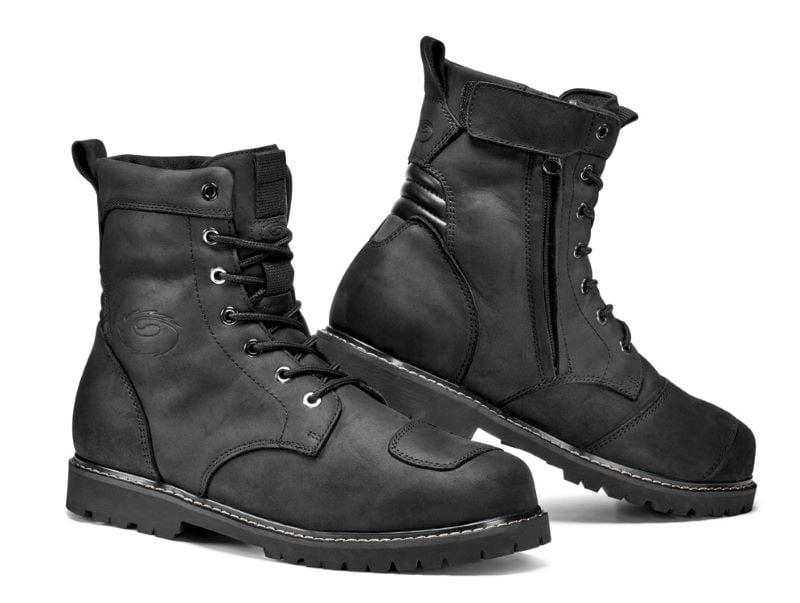 Proposée en deux versions, étanche WP ou standard, la Denver reprend le concept des chaussures moto sécuritaires sans en avoir l’air. Sidi propose ici une alternative aux sneakers en proposant un équipement CE aux airs de workers voire de rangers. Répondant aux codes néo-rétro, avec des airs de vintage, l’italienne n’en est pas moins dernier cri avec tout ce que nous sommes en droit d’attendre d’un équipement haut de gamme. Cuir pleine fleur avec éléments intérieurs supérieurs matelassés, renforts, semelle technique… Tout y est.