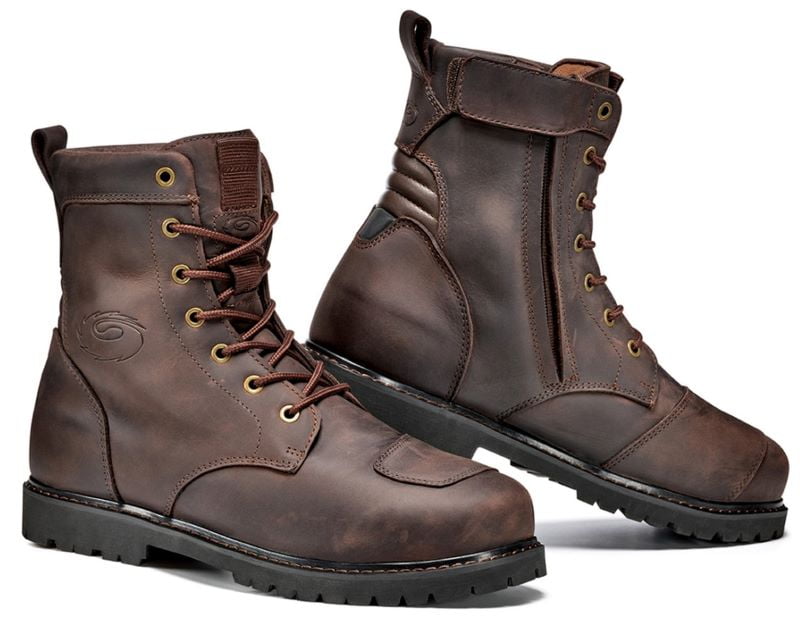 Proposée en deux versions, étanche WP ou standard, la Denver reprend le concept des chaussures moto sécuritaires sans en avoir l’air. Sidi propose ici une alternative aux sneakers en proposant un équipement CE aux airs de workers voire de rangers. Répondant aux codes néo-rétro, avec des airs de vintage, l’italienne n’en est pas moins dernier cri avec tout ce que nous sommes en droit d’attendre d’un équipement haut de gamme. Cuir pleine fleur avec éléments intérieurs supérieurs matelassés, renforts, semelle technique… Tout y est.