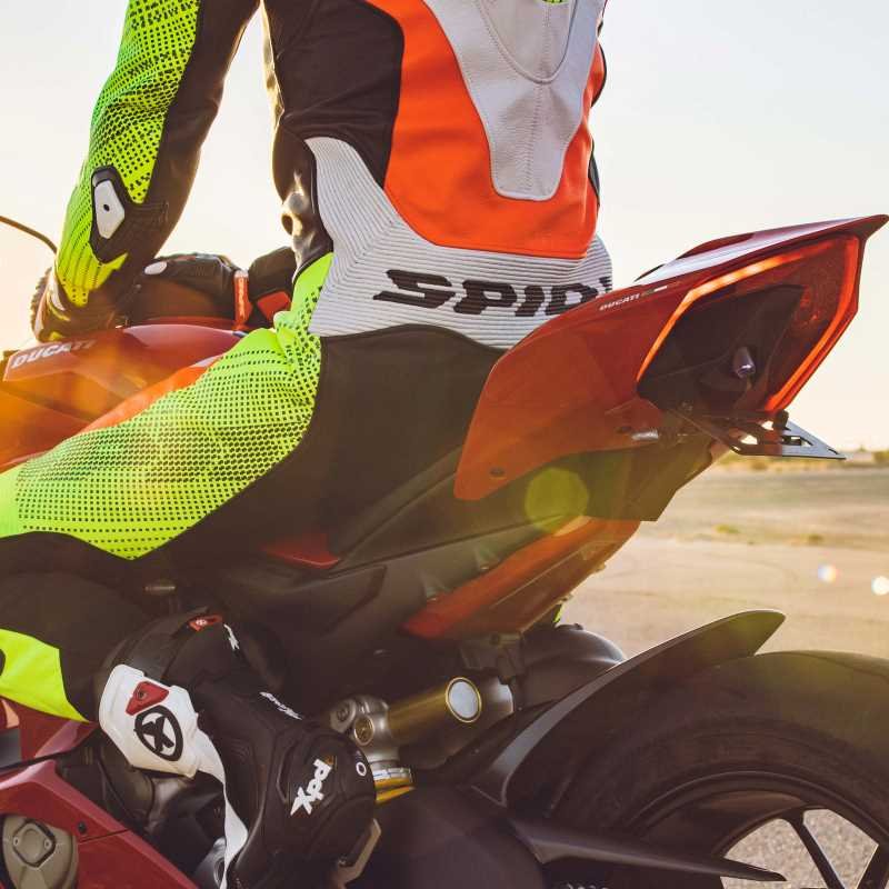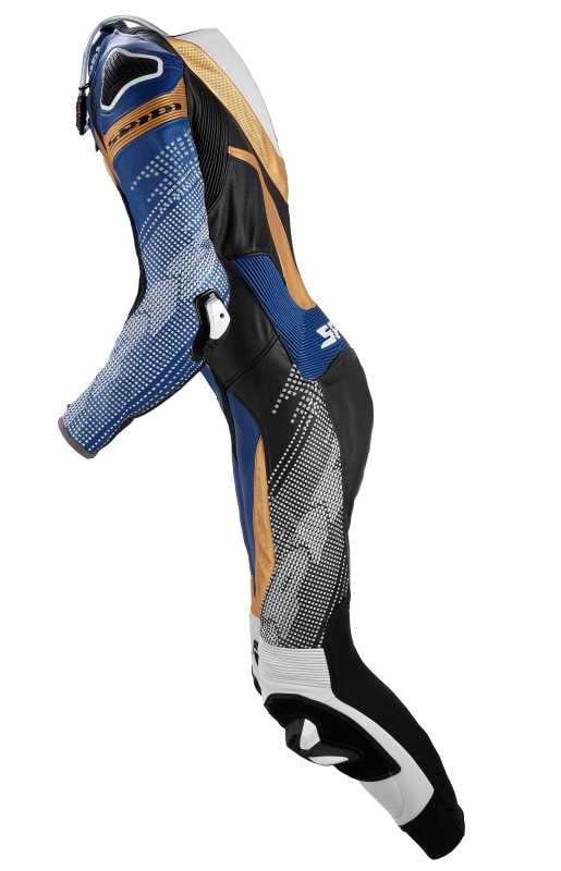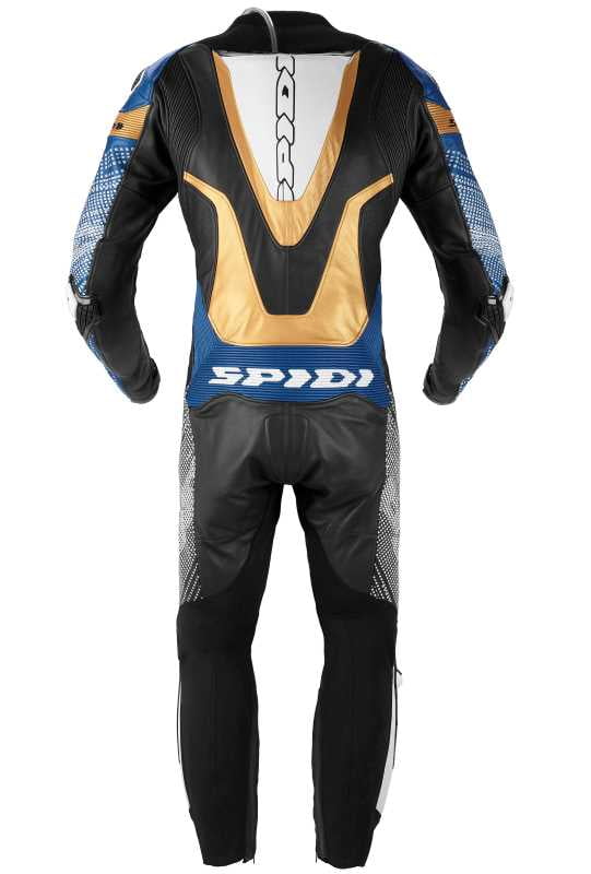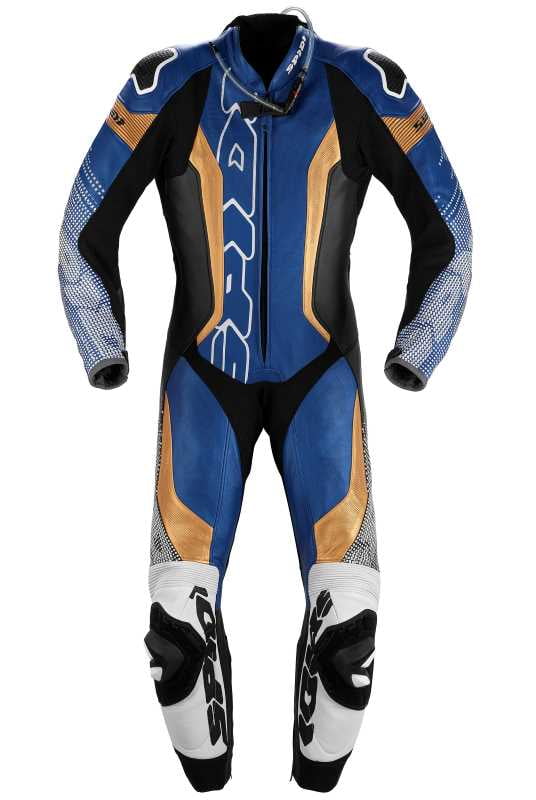 La marque au chat signe ici une nouvelle combarde pour les pistards mais aussi ceux qui veulent rouler avec un max de protection sur route. Spidi fait confiance à un cuir bovin pleine fleur (épaisseur 1,3 mm) dont certains éléments sont perforés afin de laisser passer un max d’air en dynamique. On retrouve donc des éléments en cuir extensible avec une construction à deux dimensions avec une association à du textile tissé à base de nylon 6.6. Du néoprène débarque aux chevilles et au cou pour plus de confort.