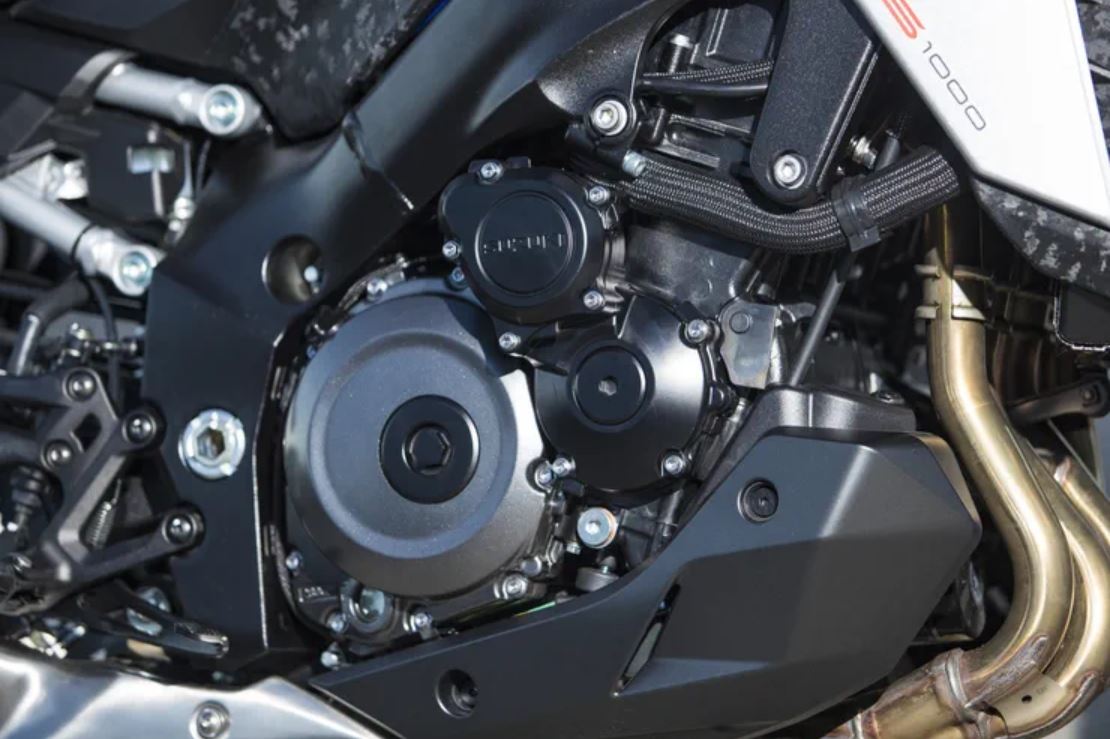 Le quatre cylindres de 999 cc est issu de la GSX-R1000, révisé en tous points pour adapter son caractère, améliorer les émissions sans réduire les performances.