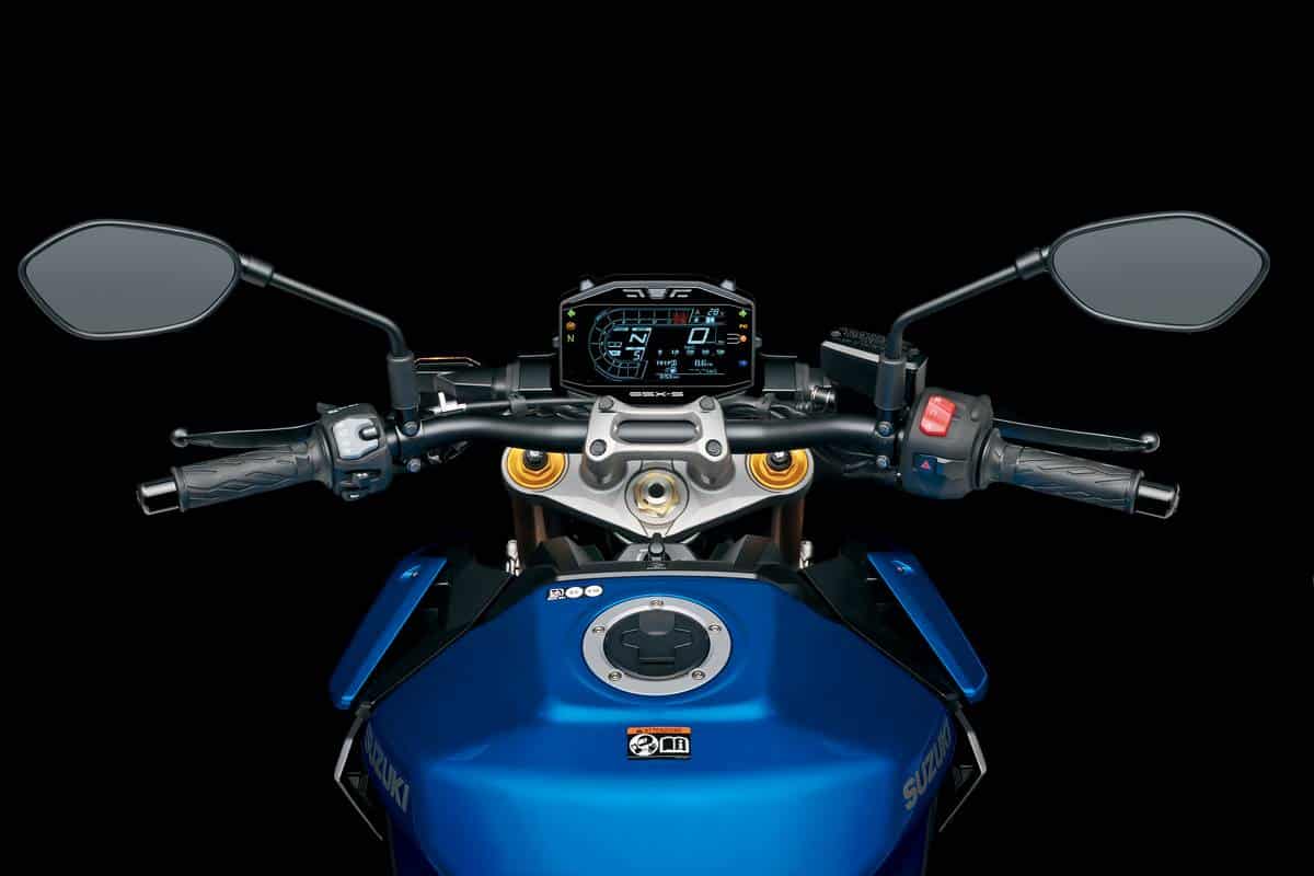 La nouvelle GSX-S1000 sera disponible à la fin du mois de juin, avec trois coloris proposés : le combo bleu et argent de style MotoGP, un gris plus subtil ou une version entièrement noire. Le tout pour un tarif de 13.199 €, soit 300 € de plus que pour le millésime 2020.