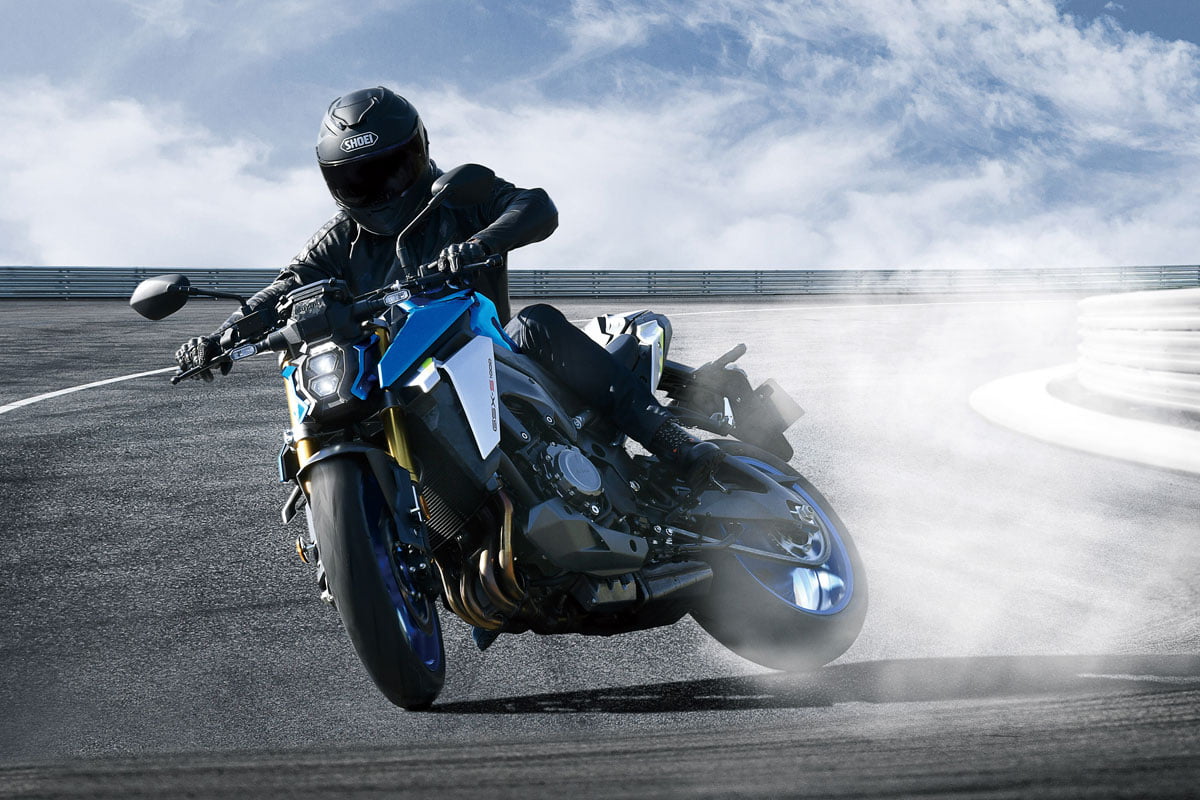Pour 2021, la GSX-S1000 a fait l’objet d’une mise à niveau majeure en termes de style, d’électronique et de moteur. La transformation est intelligente, car Suzuki a réussi à créer un look totalement revu pour la GSX-S1000 sans avoir à investir massivement dans une refonte mécanique complète. Tous les gros composants coûteux que sont le cadre, le moteur, la suspension, le bras oscillant et les roues sont en grande partie conservés ou avec des modifications mineures. Côté moteur, elle est toujours dotée du quatre-cylindres dérivé de celui de la GSX-R 1000 avec l’électronique de dernière génération et un châssis raffiné. Malgré l’homologation Euro 5, la puissance augmente et Suzuki promet également une meilleure maniabilité.