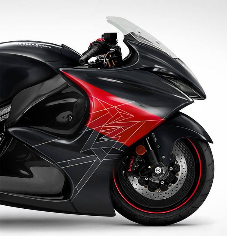En ce qui concerne le châssis, les croquis montrent un cadre qui restera fidèle à la double poutre en aluminium, bien qu’il utilise des sections plus étroites et plus légères du cadre pour économiser des kilos sur la balance. Enfin, l’emplacement des deux silencieux d’échappement sur les côtés de la moto attire l’attention, signe d’identité qui a accompagné le Hayabusa durant ses 20 ans de présence sur le marché.