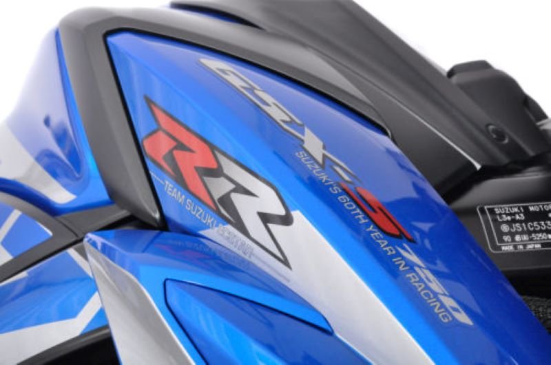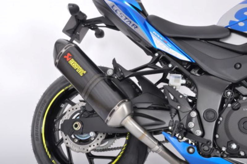 Livrée bleue et grise pour le roadster qui en profite pour recevoir un échappement signé Akrapovic. Support de plaque et plaque commémorative 100ème anniversaire complèteront le package de la meilleure vente France chez Suz.
