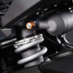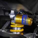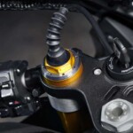 Le modèle 2020 adopte la fourche à gaz Öhlins ERS NPX. À l’intérieur de l’axe de fourche se situe un cylindre contenant du gaz. En exerçant une pression interne de 0,6 MPa, le gaz réduit la cavitation de l’huile de fourche causée par la pression négative qui se produit sur la course de détente. La nouvelle fourche à gaz Öhlins ERS NPX contribue de manière significative à un amortissement plus constant pour un contrôle du châssis plus élevé, ainsi qu’à une plus grande agilité pour des chronos au tour réduits. La suspension arrière électronique Öhlins bénéficie quant à elle d’un réglage de précharge modifié.