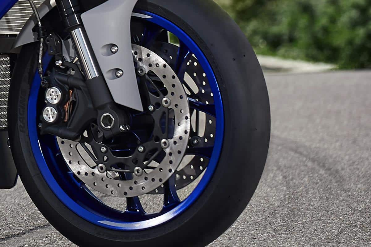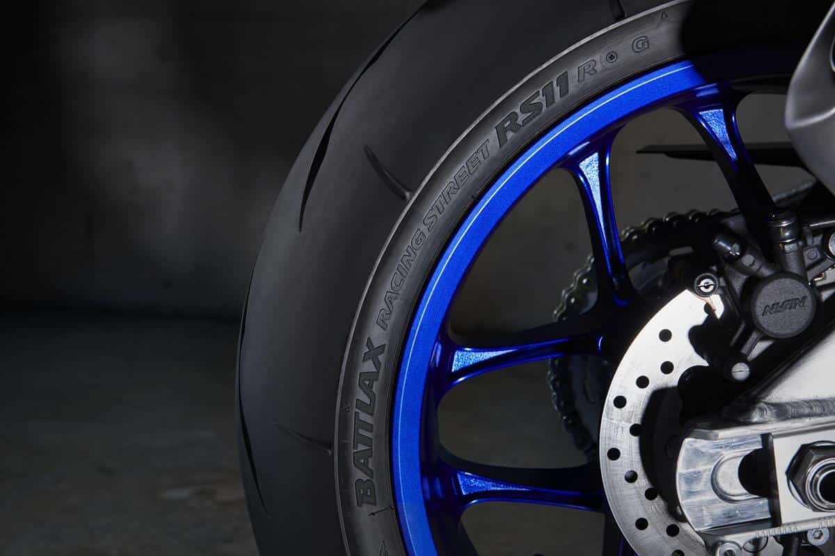 Le double disque avant de 320 mm avec étriers monoblocs est réputé pour sa puissance et le feeling de freinage exceptionnel qu’il offre. En 2020, des plaquettes disposant d’un nouveau matériau de friction accentuent la puissance de freinage. Les derniers pneus Bridgestone Battlax RS11 offrent une traction exceptionnelle et des sensations précises, ce qui permet au pilote de repousser encore plus ses limites lorsque cela est nécessaire.