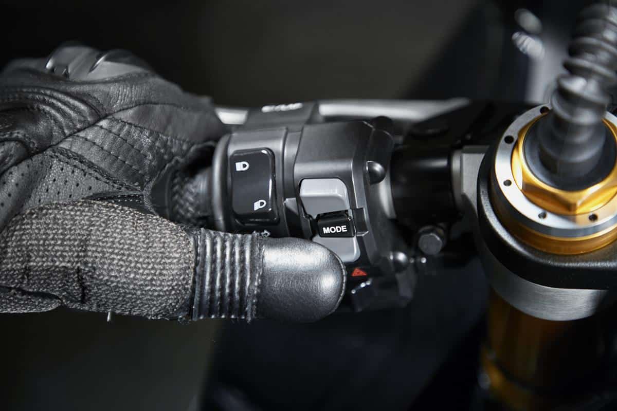 Le nouveau système de commande des freins (BC) permet au pilote de sélectionner l’un des deux modes ABS (BC1 et BC2), en cohérence avec ses préférences personnelles et les conditions de roulage. Le mode BC1 propose un réglage ABS constant, tandis que le mode BC2 fluctue en fonction de l’angle d’inclinaison et de l’attitude de la machine. En mode BC2, la sensibilité de l’ABS et la vitesse d’engagement augmentent au fur et à mesure que l’angle d’inclinaison augmente, ce qui renforce la confiance et le contrôle en courbe.