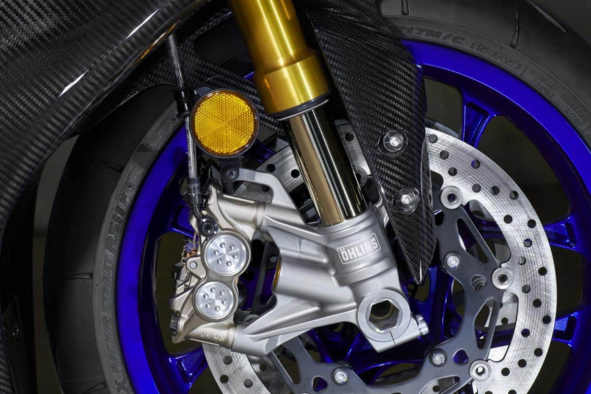 La YZF-R1M utilise les suspensions Öhlins « Racing » à réglage électronique (ERS) de dernière génération, proposant divers réglages précis pour un contrôle optimal et de plus grandes performances.