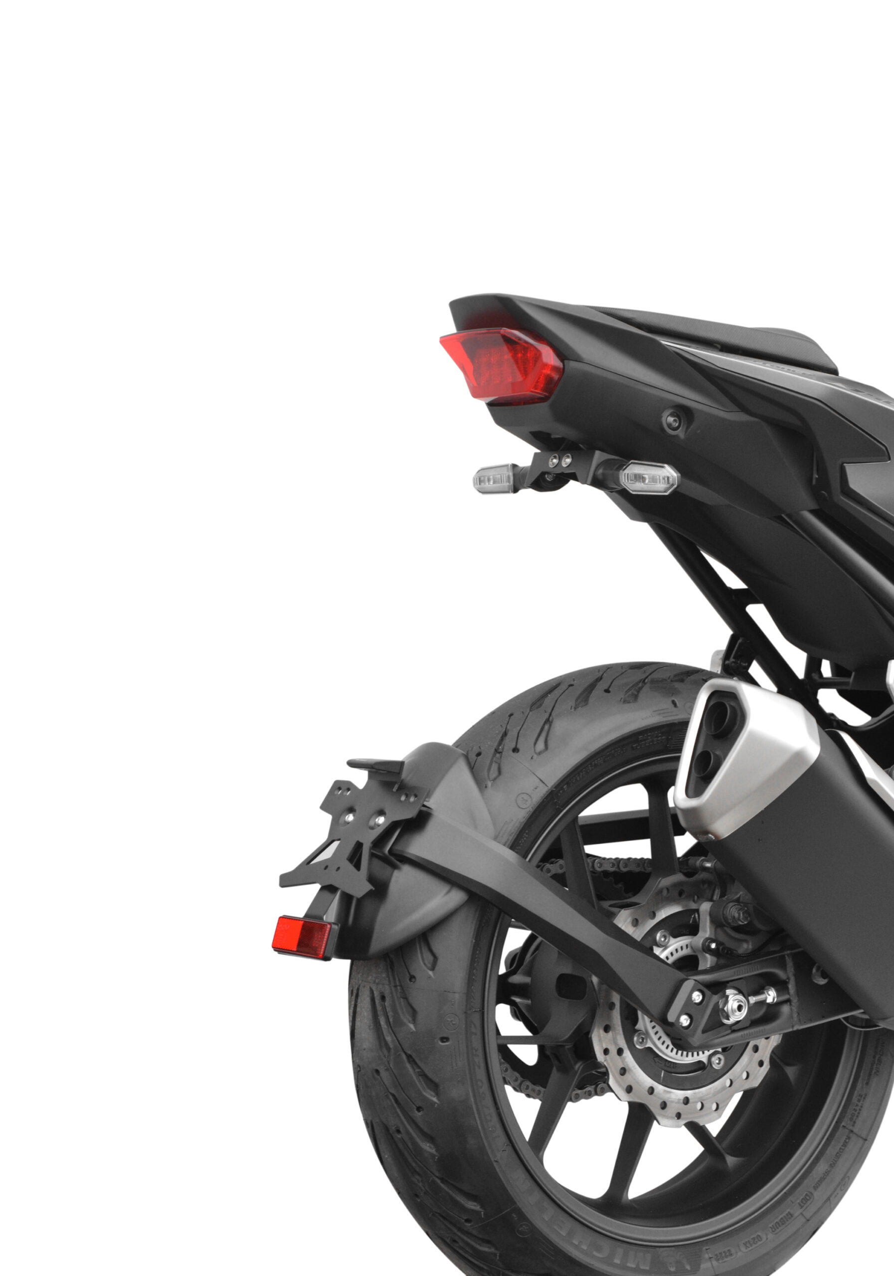 En ce début d’année le fabricant franc-comtois Top Block dévoile les accessoires incontournables pour ce nouveau modèle. Ce sont tout d’abord deux supports de plaques qui sont proposés, un premier en position haute et un second en position basse avec un garde-boue façon lèche-roue. Une pièce sur laquelle vient se fixer le support de plaque TBR en aluminium. La base arrière de la Hornet se retrouve ainsi épurée ne conservant que de petits clignotants et son phare. A contrario les clients plus traditionnels pourront opter pour le support aluminium en position haute.
