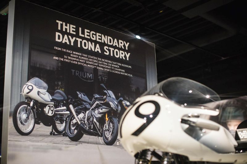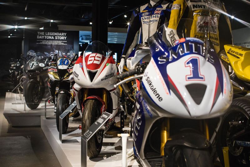 Des motos de course historiques aux dernières versions, la Daytona est mise à l’honneur dans les locaux anglais de Triumph.