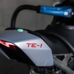 De par sa conception, la TE-1 apparaît aussi immédiatement reconnaissable qu’une Triumph : l’aluminium visible pour le cadre qui reprend les formes des roadsters bien connus et le double phare qui distingue les Speed ​​et Street Triple ne sont que quelques-uns des éléments qui placent la TE-1 très proche dans la conception des Triumph endothermiques, avec des dimensions globales similaires. Ajoutez à cela la suspension Öhlins et le monobras oscillant, emprunté aux Speed ​​Triple RS et RR qui améliorent la qualité de conduite dynamique et, de plus, sur les deux côtés du carénage se détachent les radiateurs qui semblent assurer le refroidissement de la batterie. De toute évidence, le levier d’embrayage et le sélecteur de vitesse sont manquants, en comparaison aux modèles thermiques.