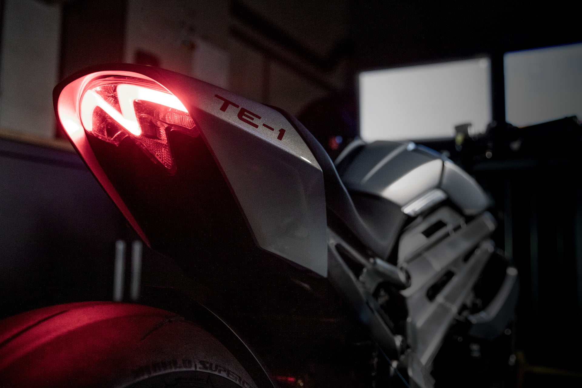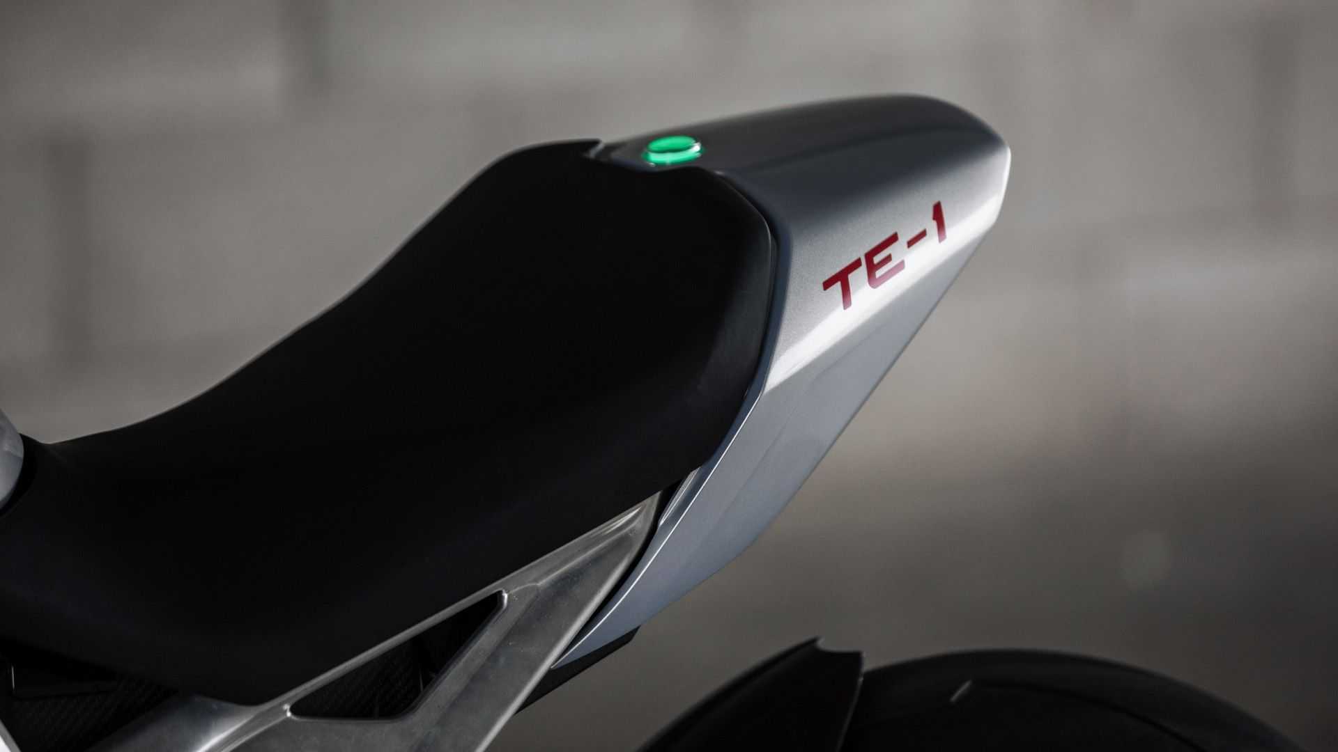 De par sa conception, la TE-1 apparaît aussi immédiatement reconnaissable qu’une Triumph : l’aluminium visible pour le cadre qui reprend les formes des roadsters bien connus et le double phare qui distingue les Speed ​​et Street Triple ne sont que quelques-uns des éléments qui placent la TE-1 très proche dans la conception des Triumph endothermiques, avec des dimensions globales similaires. Ajoutez à cela la suspension Öhlins et le monobras oscillant, emprunté aux Speed ​​Triple RS et RR qui améliorent la qualité de conduite dynamique et, de plus, sur les deux côtés du carénage se détachent les radiateurs qui semblent assurer le refroidissement de la batterie. De toute évidence, le levier d’embrayage et le sélecteur de vitesse sont manquants, en comparaison aux modèles thermiques.