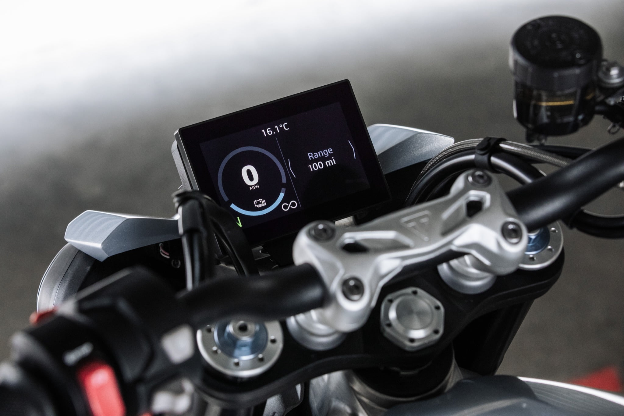 Grâce à la densité d’énergie de la batterie développée et conçue par Williams, la TE-1 est capable de parcourir 161 km sur une seule charge sur la base de tests effectués dans des conditions comparables à une utilisation réelle. Le freinage régénératif contribue également à ce résultat, ouvrant de nouveaux développements et raffinements sur la future gamme de motos électriques Triumph.