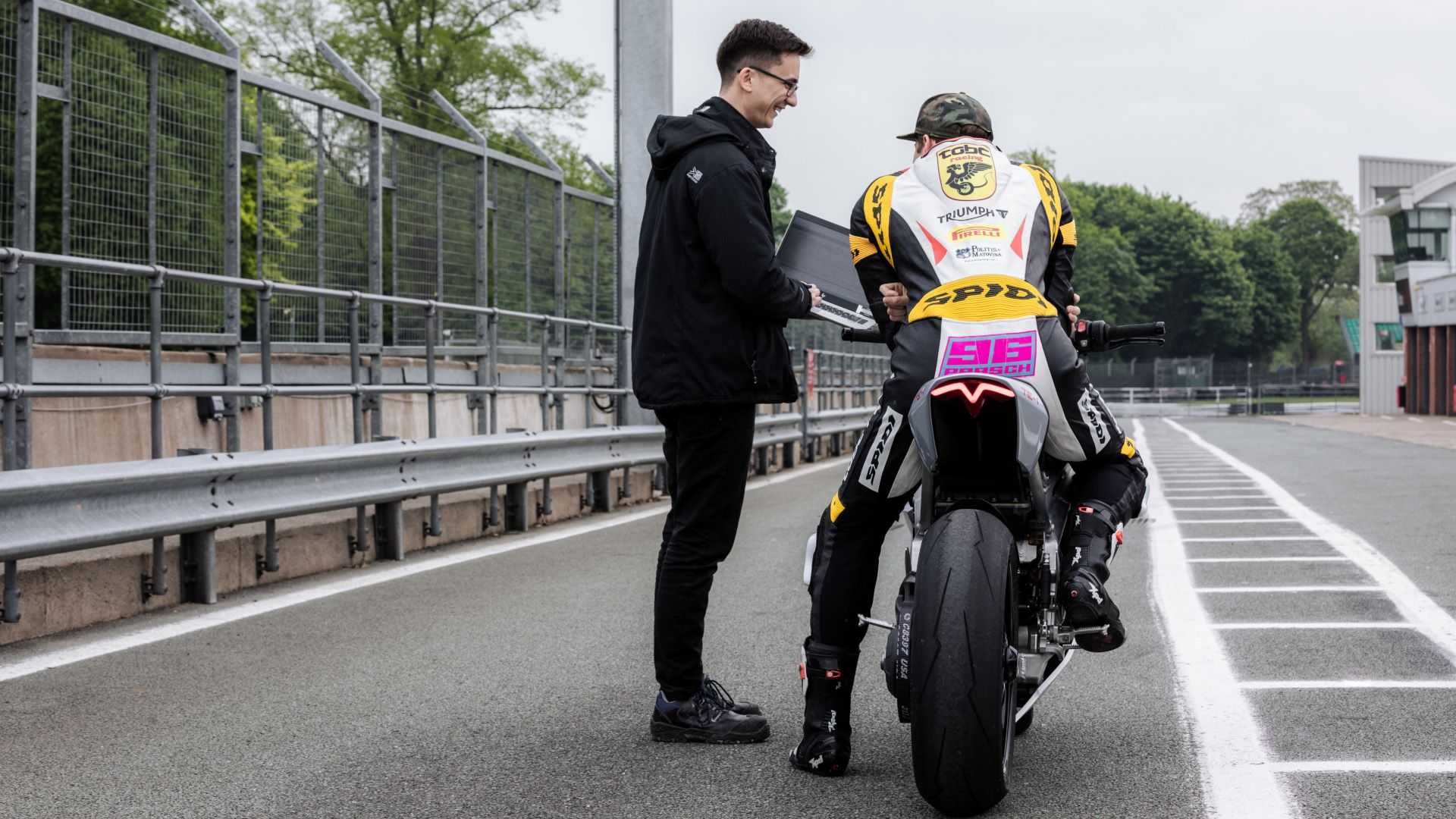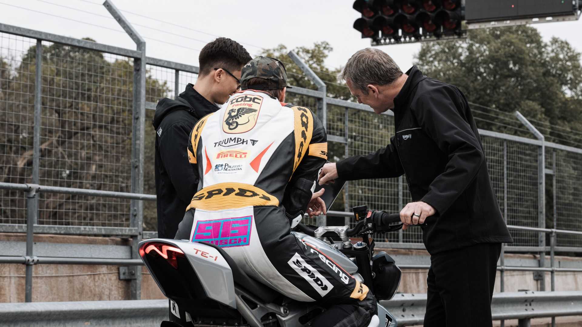 Lors de la phase de test finale du TE-1, Triumph a fait appel à Brandon Paasch, jeune pilote américain de vingt ans fraîchement vainqueur – pour la deuxième fois consécutive – de la Daytona 200 sur une Triumph 675. Il a participé à la phase de test finale, à la fois dans l’évaluation des performances du composant électrique et dans la mise au point finale du prototype à travers de nombreux tests effectués sur la piste, qu’il a résumé ainsi : « La réponse de l’accélérateur sur la TE-1 est incroyable, quand vous touchez la poignée, la puissance est délivrée instantanément, ce qui est évidemment ce que j’aime en tant que motard. J’adore la prestation du couple. J’ai eu l’occasion de tester le prototype sur route dans différentes situations, et il est incroyablement rapide », ajoutant une considération également concernant la tenue de route et les performances globales : « J’aurais aimé avoir ce prototype à Daytona, avec cette accélération et ce châssis, incroyable ! Je pense que ce sera une moto vraiment agréable à conduire sur la route, grâce à son agilité. »
