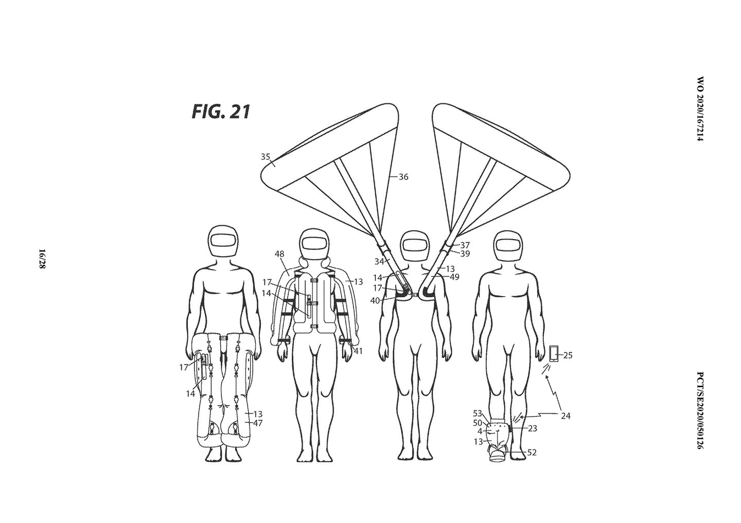 La société suédoise Airbag Inside a déjà développé un système de vêtements airbag sous la marque Mo’cycle, avec des airbags installés classiquement à l’intérieur des manches des vestes et des jambes des pantalons. Elle lance ses premiers produits, notamment des jeans airbag, un gilet airbag et même des shorts airbag plus tard cette année, mais les brevets de la société montrent des idées encore plus ambitieuses pour l’avenir. Parmi eux se trouvent des bottes équipées d’airbags et un système de parachute.