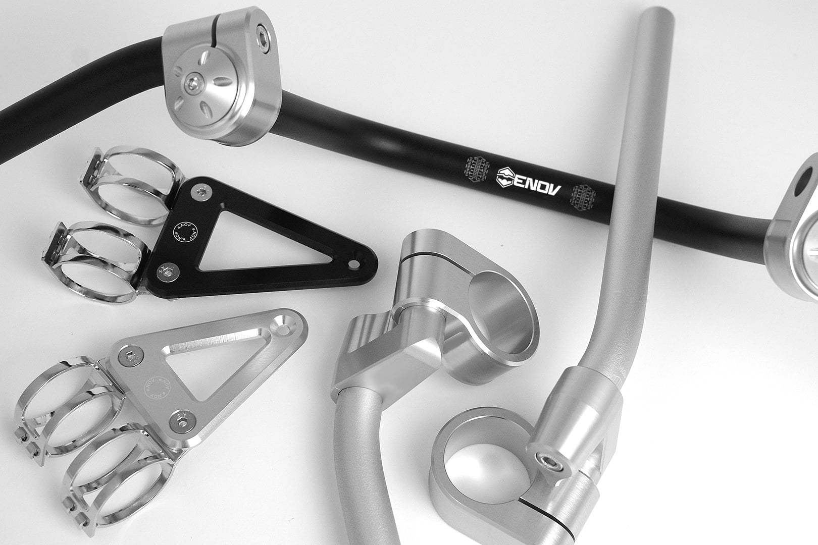 Simon Piguet, ancien directeur de la division moto de Beringer, et l’attaché de presse Jean-Pierre Bonato, passent aux commandes de l’entreprise française de fabrication de guidons moto Enov, dont la particularité réside dans ses réglages sur trois axes.
