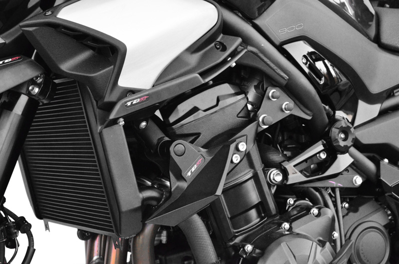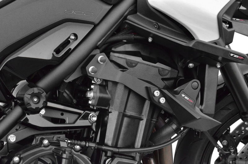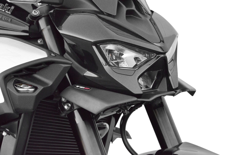 Pour le modèle phare du constructeur nippon Kawasaki, pour lequel Top Block Racing a imaginé trois pièces aérodynamiques pour former un kit qui comprend : un aileron central sous l’optique de phare ; deux ailerons latéraux au niveau du radiateur pour renforcer le look très aérodynamique de cette nouvelle Z. Chacune des pièces est livrée dans une finition noire mate et proposée séparément à la vente avec le nécessaire de montage.