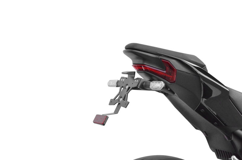 Pour accompagner ce kit, Top Block Racing propose également un support de plaque homologué en position haute. La base arrière de la moto se retrouve ainsi épurée ne conservant que de petits clignotants et son feu arrière.