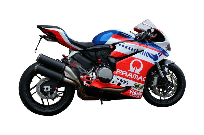 Le team Pramac Racing, qui permet actuellement à Johann Zarco et Jorge Martin de s’illustrer, a customisé une Ducati Panigale 959 à ses couleurs, en la dotant également de différents accessoires usinés dans la masse.