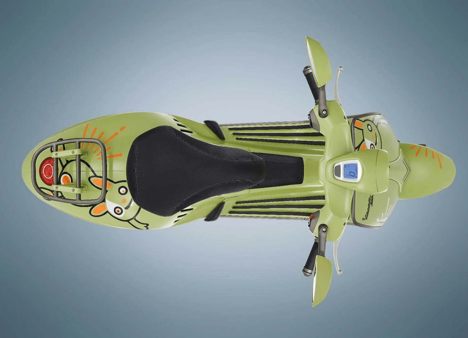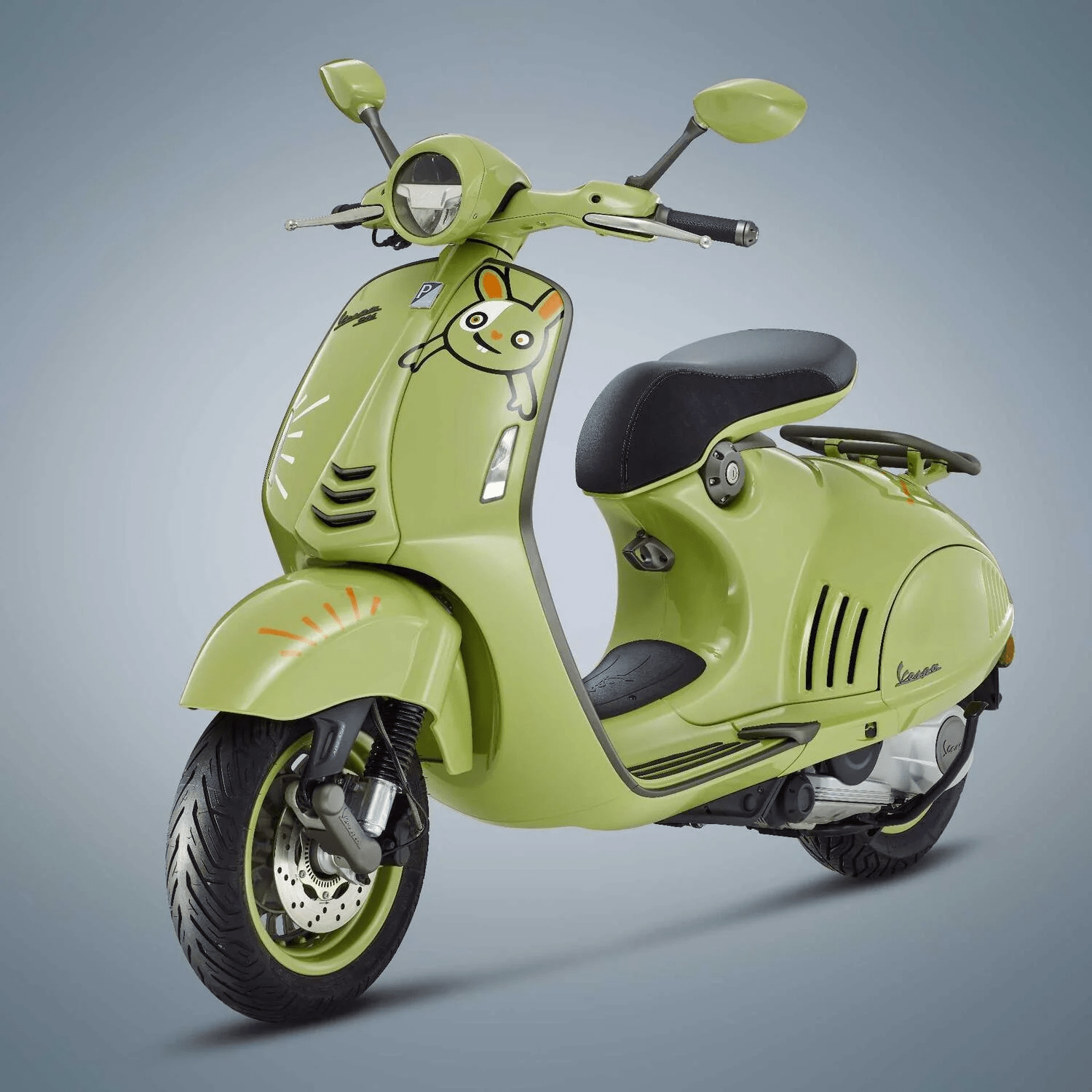 Cette version spéciale est publiée dans une refonte du vert Vespa classique, pour symboliser l’amour du plaisir, de la légèreté et de la nature typique de ceux qui sont nés sous ce signe. La silhouette stylisée d’un lapin apparaît sur le carénage. Tous les détails de la Vespa 946 10° Anniversario sont réalisés dans une finition brunie raffinée aux reflets chaleureux, tandis que la selle à double rembourrage est noire avec des coutures brunies et est cousue à la main avec une aiguille et du fil, tout comme les poignées.