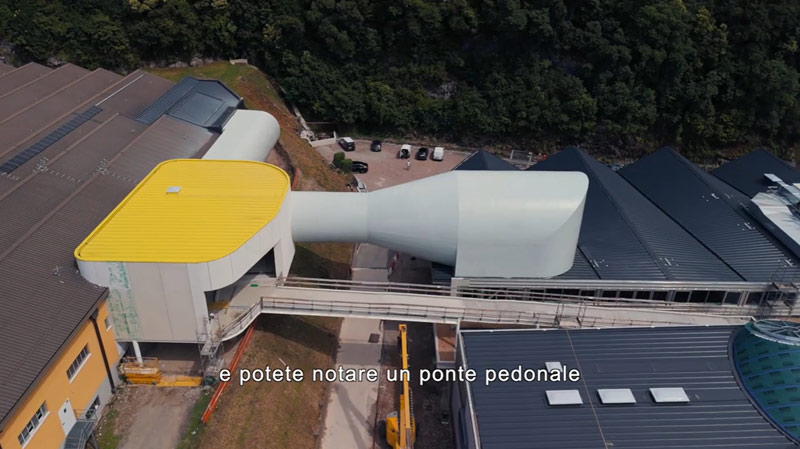 Nichée entre lac de Côme et montagnes, l’installation industrielle fondée en 1921, dont la porte d’entrée et la soufflerie datant de 1950 sont devenues légendaires, se réinvente aujourd’hui comme un symbole du futur de la marque : un lieu où le patrimoine rencontre l’innovation, où la tradition s’unit à la technologie.