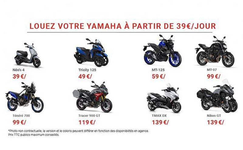 MT-07 / XSR700 / Tracer 700 : 99,00 €/jour
