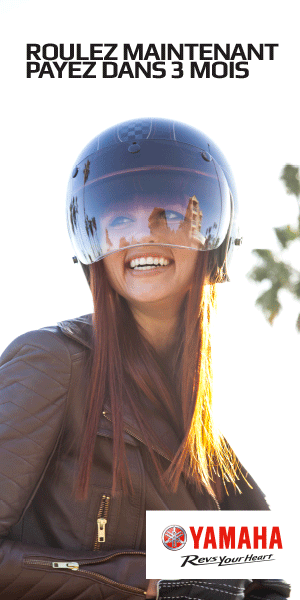 Cette offre est valable jusqu’au 30 juin 2020 sur l’intégralité de la gamme moto ou scooter Yamaha pour tout achat d’une achat à crédit sans engagement de reprise.