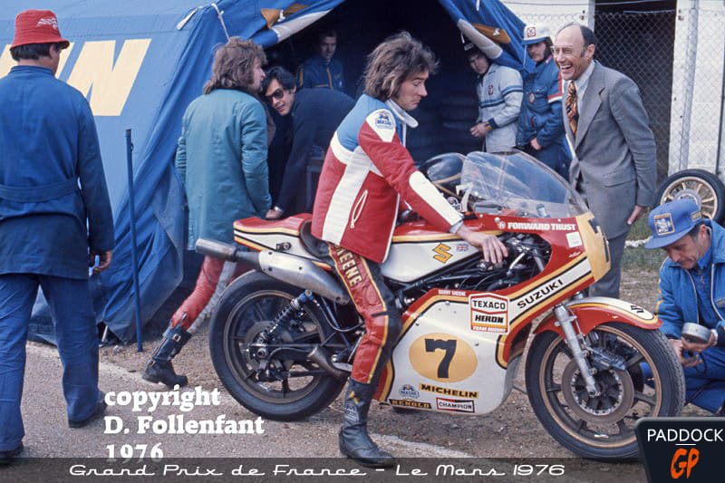 Révolutionnaire avec son 4 cylindres 2 temps en carré, mythique compagne de la carrière du gigantesque Barry Sheene, la Suzuki 500 RG a accompagné tous les pilotes de la catégorie 500 dans les années 75 / 80 en représentant parfois la totalité du plateau des GP 500.