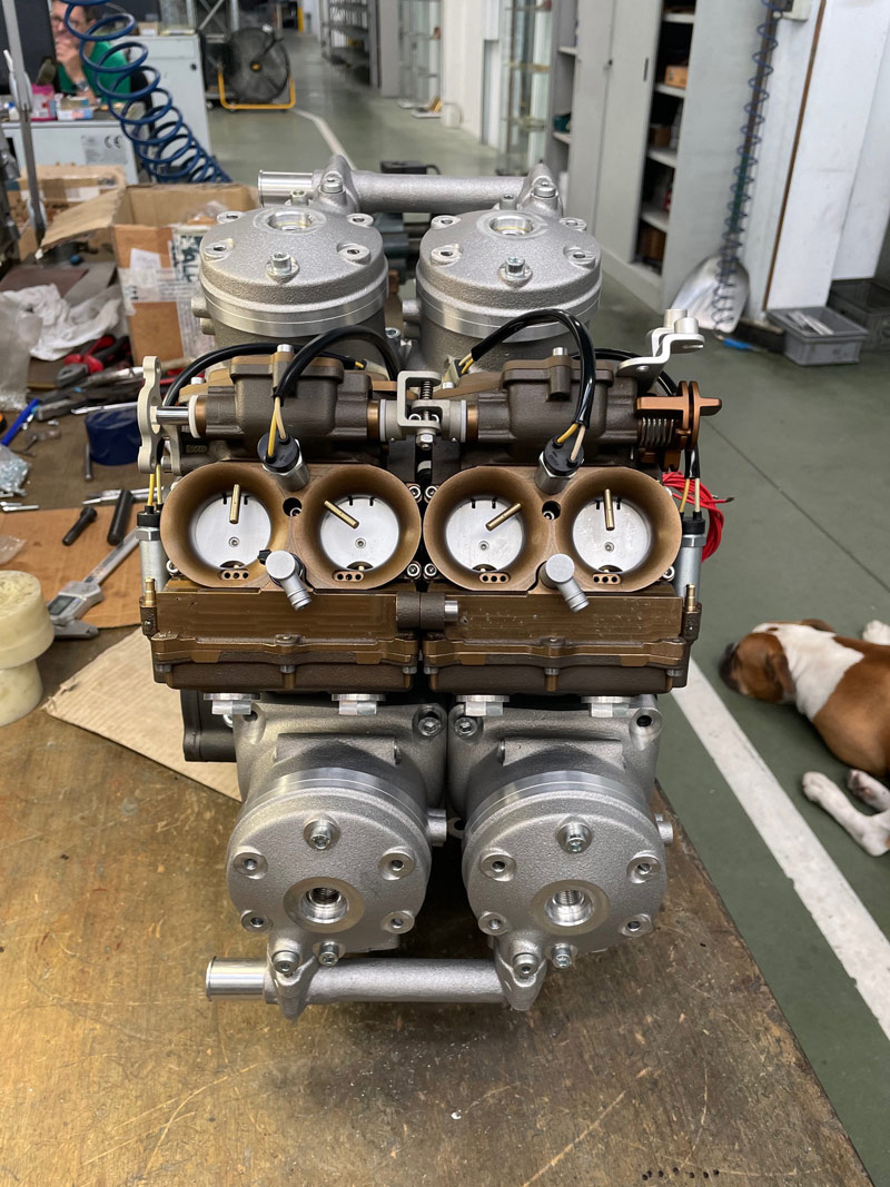 « Ensuite, je voulais refaire le moteur Swissauto. Pourquoi ? Parce que la base je suis un peu suisse-allemand (rires) et je trouve que c’est un moteur magnifique car encore plus compact que le Yamaha 500. Là, il me parle d’un autre copain qui est à Modène, Alex Arletti, qui avait fait des châssis pour mettre des moteurs RDLC 500 et qui voulait maintenant faire une vraie moto avec un vrai moteur de course. Donc Carlo Mattarozzi me propose de faire une réplique de moteur Yamaha au lieu du Swissauto, et comme au départ j’avais déjà l’intention de refaire les rampes de carburateur Mikuni pour ces motos, j’ai dit pourquoi pas. C’est comme ça que l’histoire a commencé. »