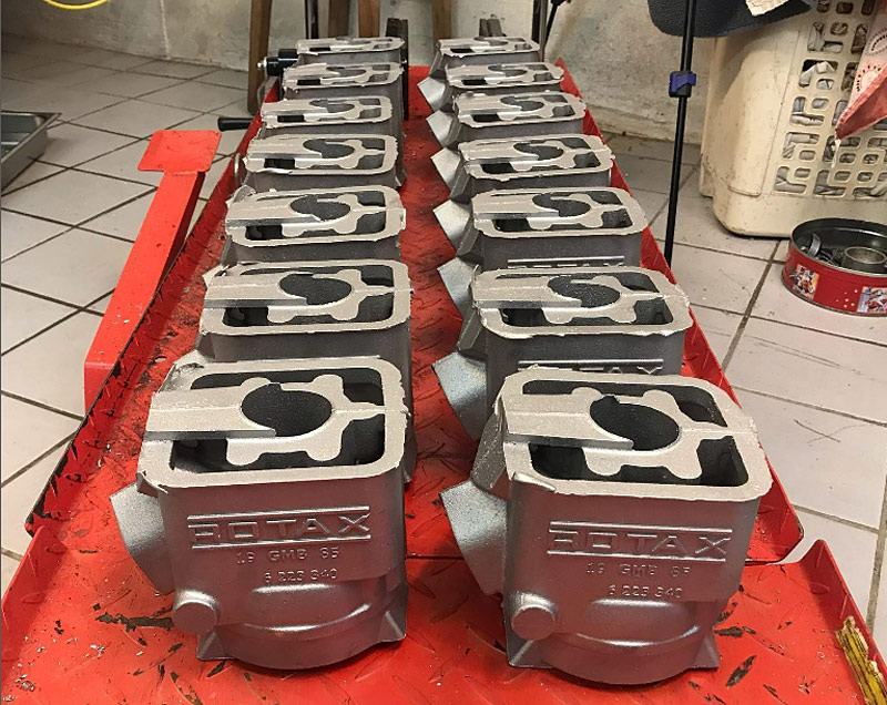 « Non, contrairement à ce que l’on pense, ce n’est pas si cher. Prenons le cas des cylindres Rotax. Au début, je voulais en faire une douzaine, en fonction des gens intéressés. Au final, j’en ai fait 26 que j’ai vendus dans tous les pays, Angleterre, États-Unis, Canada. Le gros travail, c’est de faire les modèles. Au départ, c’était des menuisiers-modeleurs qui faisaient les moules de fonderie. Ils construisaient les formes avec du bois et faisaient les caisses autour pour contenir le sable. Le modèle est en positif, le sable en négatif, puis on met les noyaux, la chambre d’eau, etc.