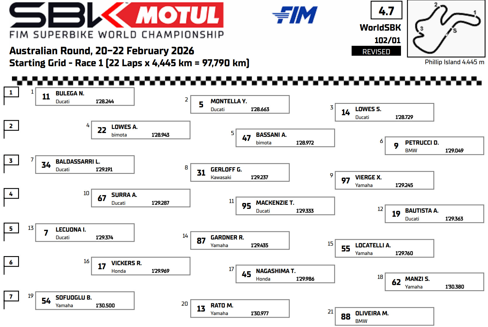 Phillip Island est le terrain de jeu de Nicolò Bulega : le début du championnat du monde 2026 a été sans histoire, avec une quatrième victoire consécutive sur ce circuit avec une Ducati qui a tout raflé en plaçant également sur le podium les fantastiques pilotes privés Yari Montella et Lorenzo Baldassarri.