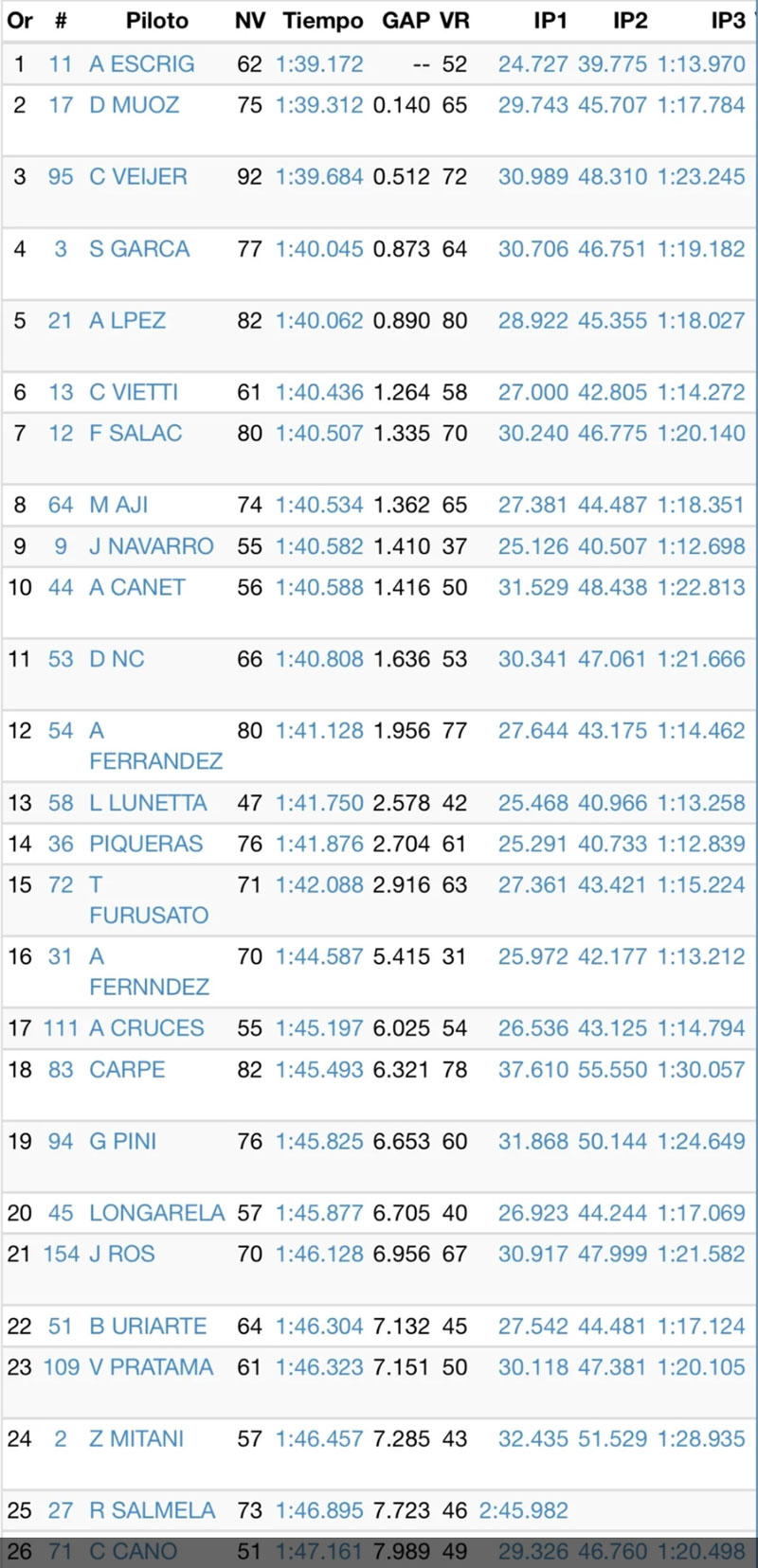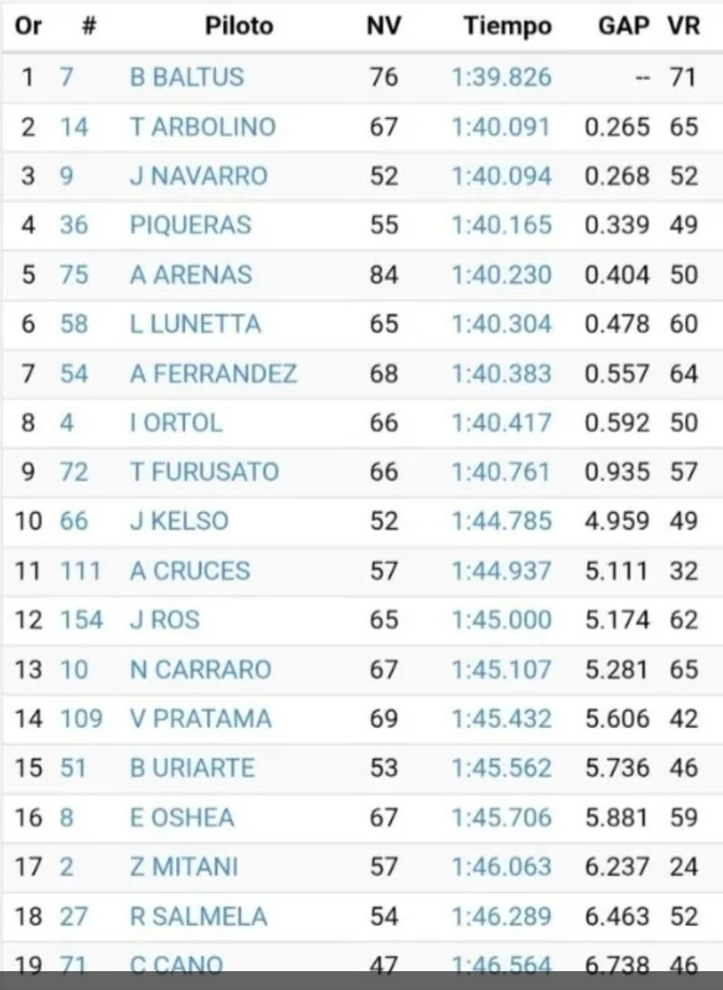 Suivait Colin Veijer (Red Bull KTM Ajo) alors que Daniel Munoz complétait le podium virtuel à plus d’une demi-seconde.