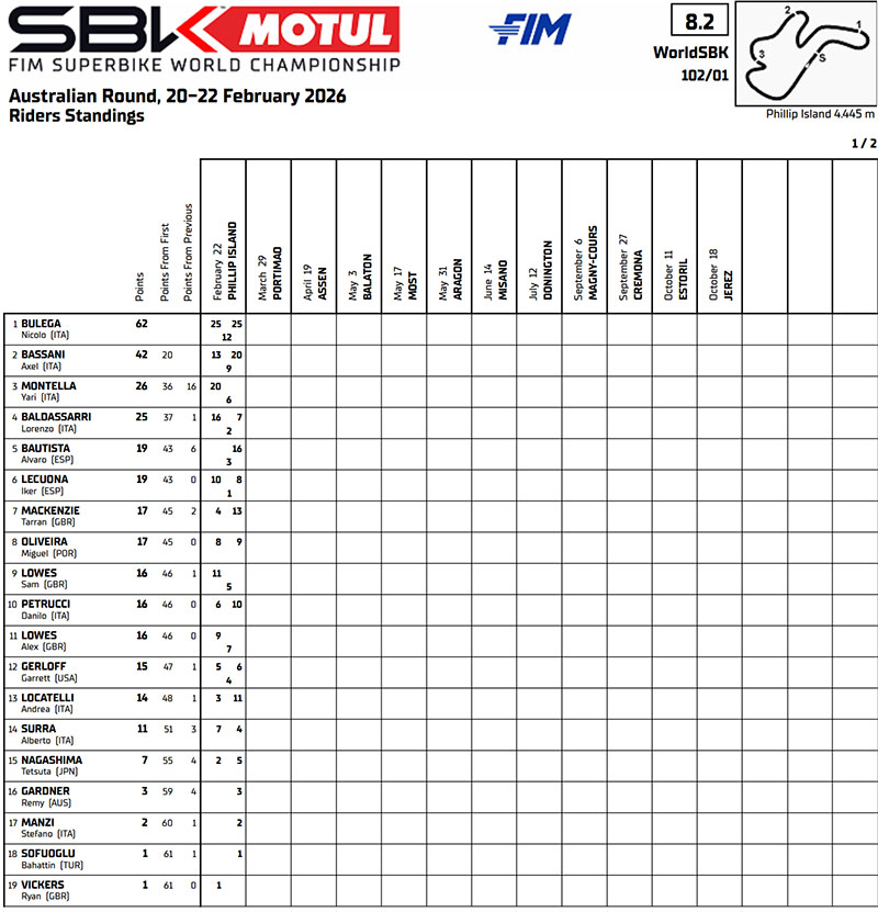 Après avoir offert hier à Borgo Panigale sa 450e victoire dans la catégorie, il a signé dimanche son deuxième triplé consécutif sur l’île australiene.