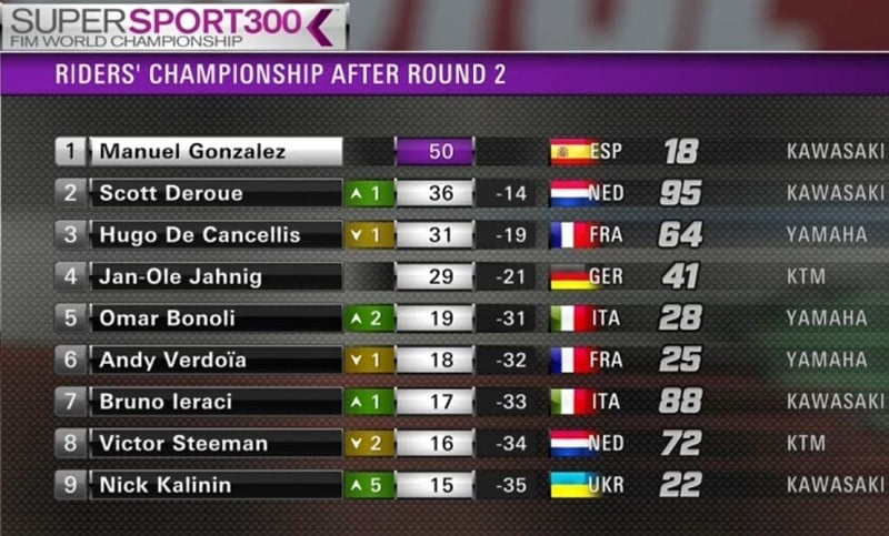 Classement provisoire du Championnat du Monde Supersport 300 :