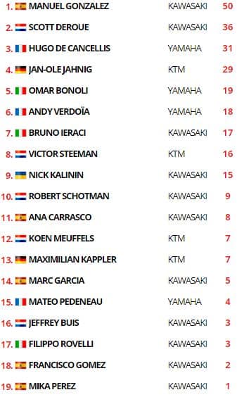 Enzo de la Vega se classait onzième, Kyrian Hartmann vingtième, Steffie Naud vingt-cinquième et Samuel di Sora vingt-huitième.