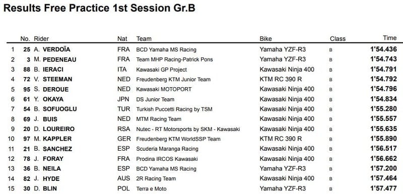 Andy Verdoïa et Mateo Pedeneau se sont mis en valeur en réalisant les meilleurs chronos de la FP1, tandis que Joseph Foray se classait douzième.