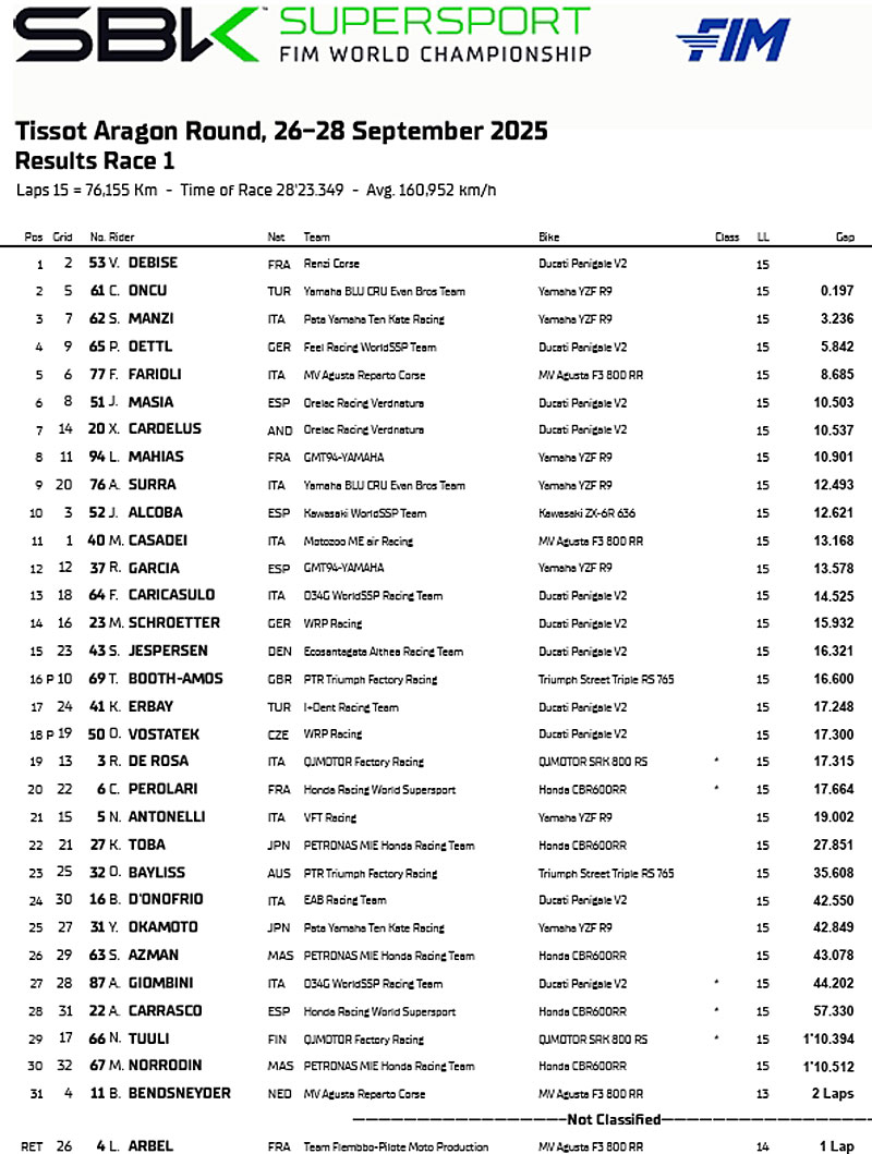 Valentin Debise : « C’est génial ! C’est presque mon circuit à domicile, car c’est le plus proche de ma maison. C’était donc très plaisant et beaucoup d’amis sont venus. C’est toujours de bons moments pour moi ici, sur la piste et en dehors. C’est aussi un endroit où je m’entraîne, car j’en suis proche. J’ai attendu cette victoire longtemps mais j’ai eu tellement de 2e et 3e places que je savais que mon heure viendrait. J’ai vu à Magny-Cours que je pouvais avoir une opportunité mais finalement j’ai eu trop de problèmes. Merci beaucoup au team car ils ont fait un travail incroyable, en réglant tous les problèmes qu’on a eu et en réparant la moto que j’ai détruite en chutant. Dès le premier tour, tout était parfait donc un grand bravo à eux, et merci aussi à tous mes sponsors. »